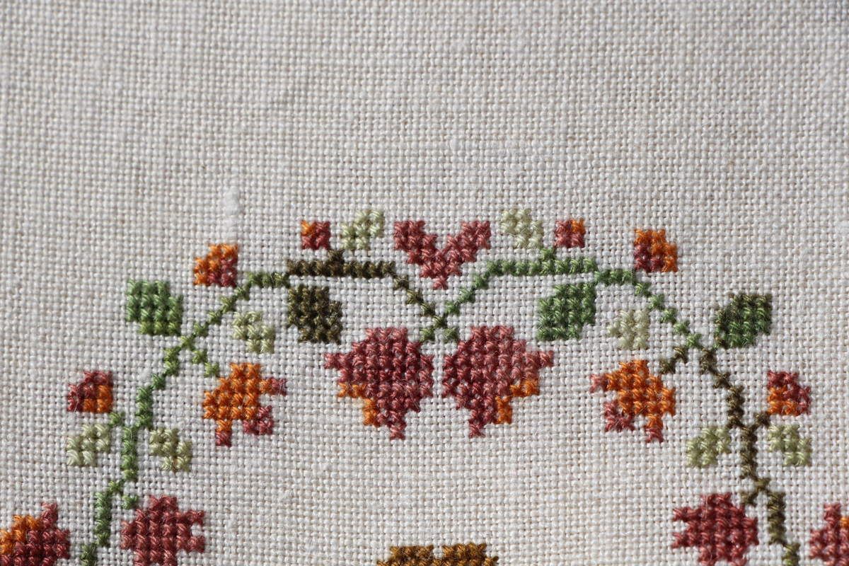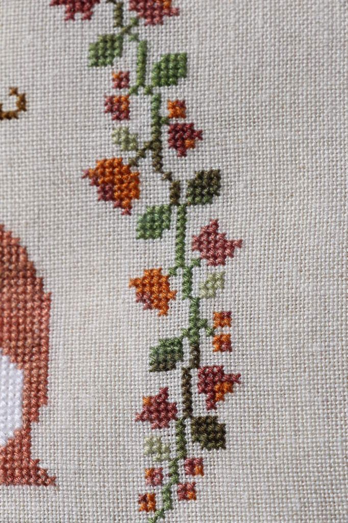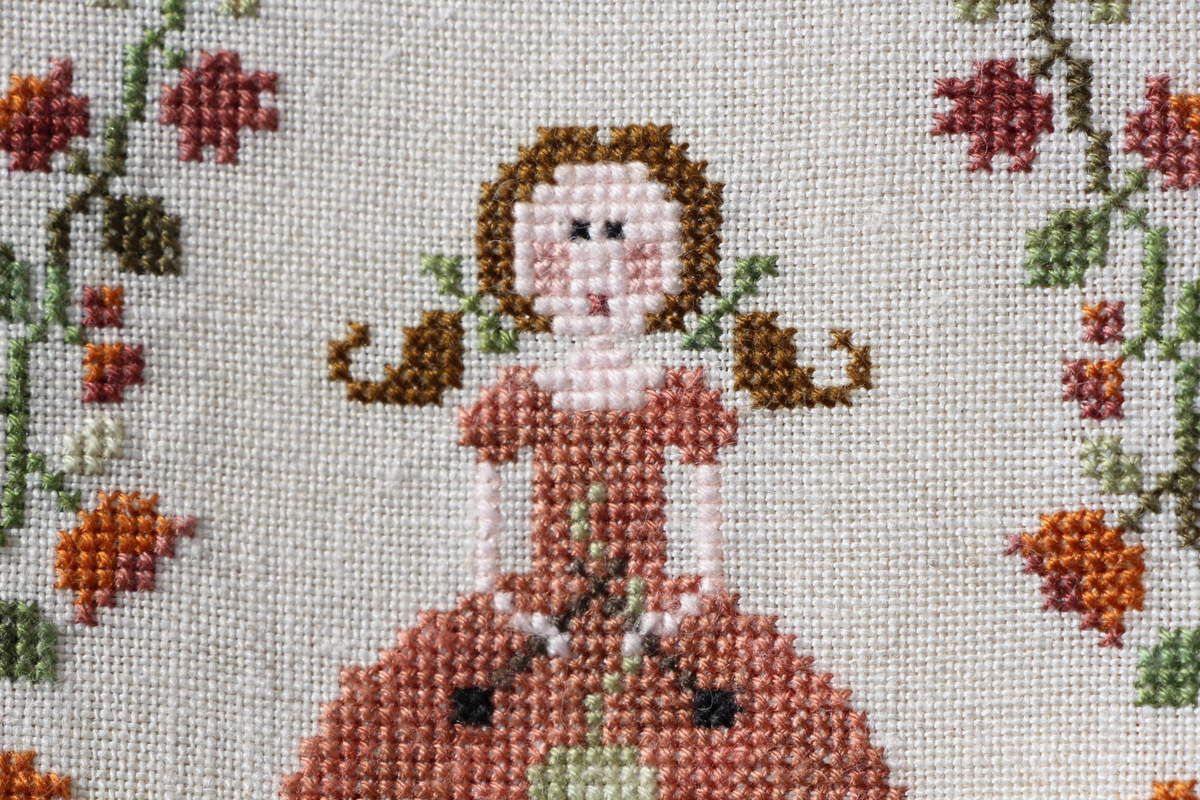 la grille fait 83 pts sur 98 pts brodée sur un lin Newcastle 16 fils/cm coloris Flax avec un brin à l'aiguille sur deux fils de trame ( = 8 pts/cm ) j'ai préféré doublé le fil 819 ( visage, bras) pour une meilleure visibilité sur la toile assez claire.brodée du 15 au 18 septembre 2017 , un réel plaisir que de broder ce modèle.. je n'aurai qu'une seule petite remarque concernant les symboles utilisés un peu trop proches ( par exemple 4 fois un carré noir de taille différente )