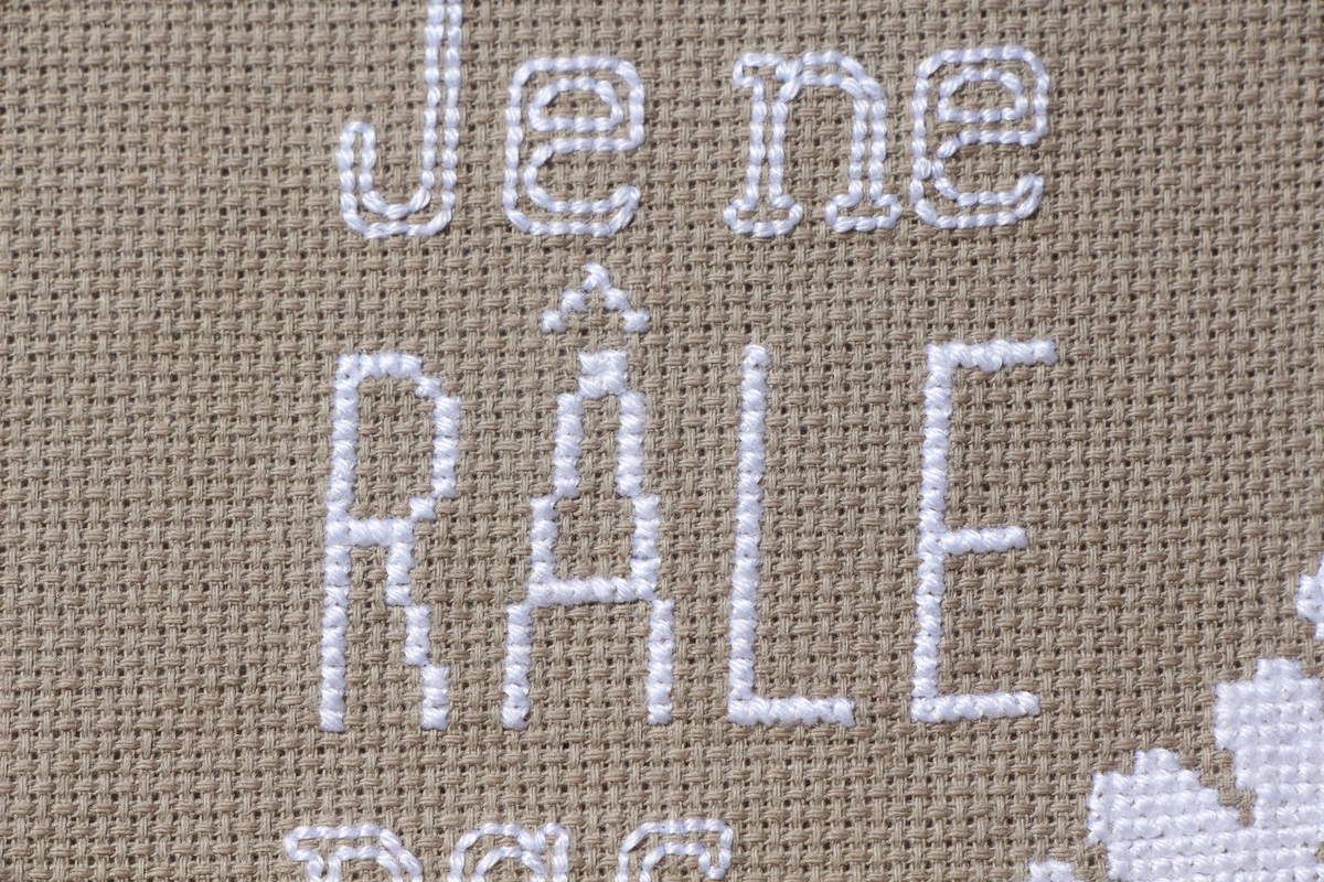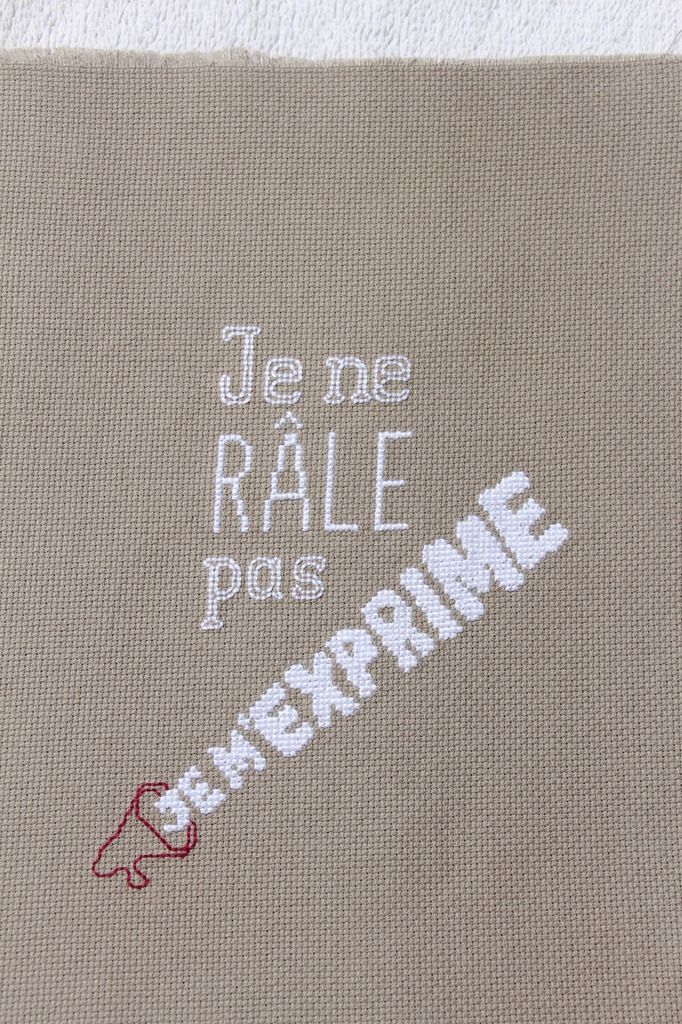 j'ai choisi le blanc B5200 , brodé avec deux brins et le rouge 3685 pour le mégaphone ( 1 fil)