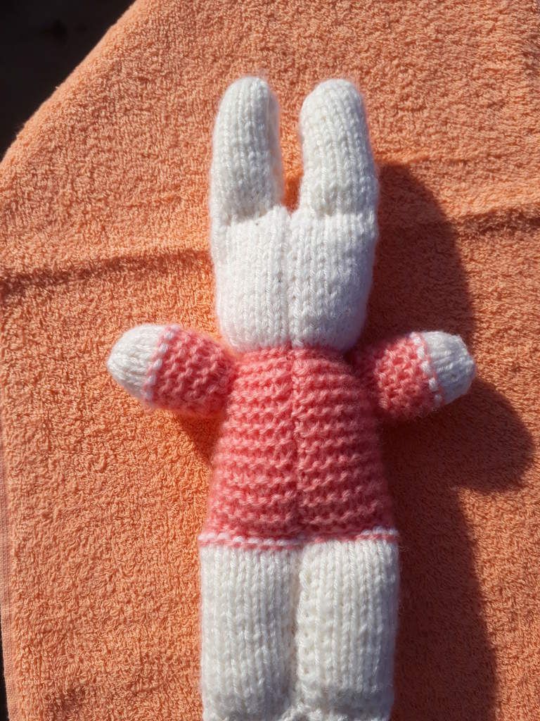 Quand j’ai vu le lapinou que Véronique avait tricoté pour sa petite fille ( article ici) j'ai tout desuite eu envie d'en tricoter un pour ma Poupette.. j'ai suivi le lien sur ce blog ( clic ici), imprimé les explications et dès jeudi j'ai commencé.. Très vite tricoté