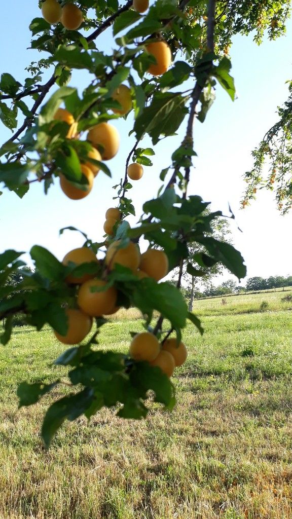 quelques fruits également: des prunes le long du chemin ,des "myrobolans" sorte de prunes- cerises, Il y a 4 arbres mais chacun a un fruit différents et chaque fruit un goût particulier plus ou moins sucré Je m'arrête alors pour une pause "goûter", je suis alors à mi-parcours de mon tour de quoi prendre des forces!