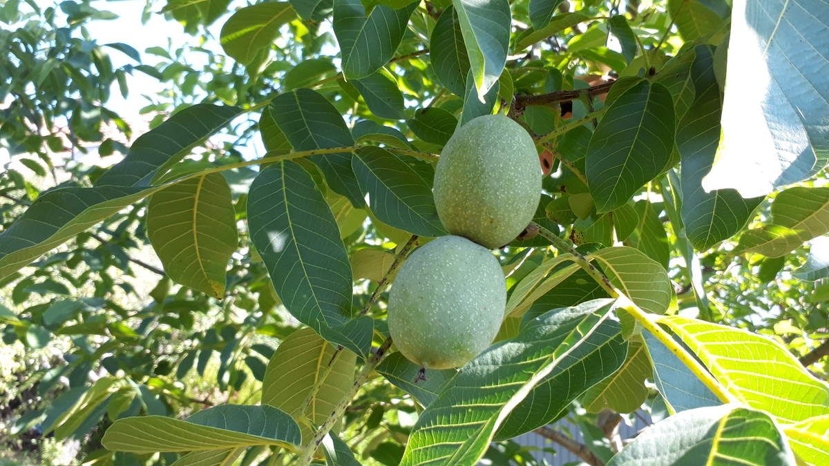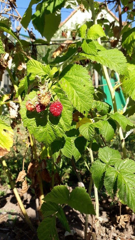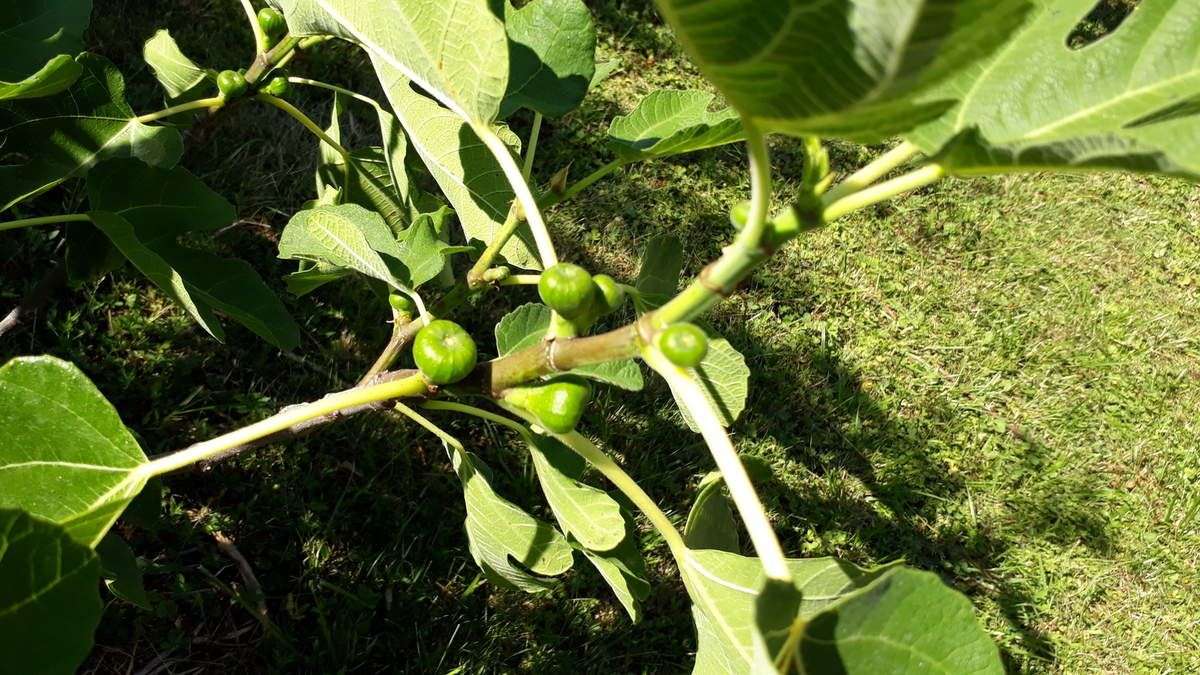 et les vignes sont bien prometteurs, le figuier a bien grandi ,le noyer porte quelques fruits les cerises, fraises et framboises sont terminées , les mûres sont encore bien vertes..